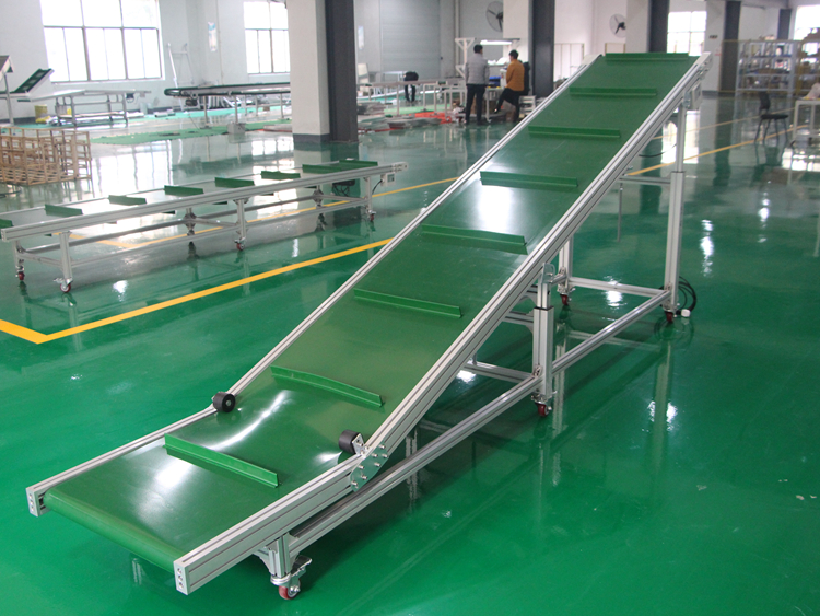 爬坡輸送機的輸送傾角大,最大可達(dá)90°,是大傾角輸送和垂直提升的理想設(shè)備。因此可以節(jié)約占地面積,節(jié)省設(shè)備投資和土建費用,取得良好的綜合經(jīng)濟(jì)效益。